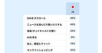 日本人は横になっている間、80%が寝床で少なくとも1種類のデバイスを使用、最も多かったのは「動画を見る」「メール、メッセージ、SNSを確認」で各56%だった