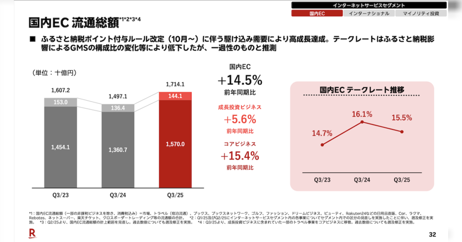 国内ユニクロ事業のEC売上高は1523億円で11.2%増、EC化率は14.8%(2025年8月期) 国内ユニクロ事業のEC化率は前期比0.1ポイント増の14.8%。全社売上高にあたる連結売上収益は前期比9.6%増となる3兆4005億3900万円