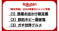 楽天グループは、暑さ対策グッズや食が今夏の一大トレンドになると予測。暑さ対策では、男性向け日傘の流通額が過去4年で23倍、日焼け止めは前年比3.8倍と伸びており注目だ。「食」分野では直近3か月で流通額2倍の「節約ホビー飯家電」、過去4年間で3倍の「ガチ世界グルメ」をトレンドとして予測した。