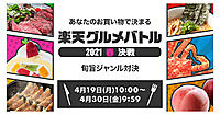 「楽天市場」は、全国558のグルメをテーマにした「楽天市場」出店店舗が参加し、ユーザーの購入結果で9つの商品カテゴリーの各1位と総合1位を決定する「楽天グルメバトル2021春」を実施