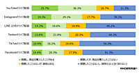 MMD研究所が発表した「ライブコマースに関する利用実態調査」。18歳~59歳の男女5000人を対象にライブコマースの利用状況を聞いたところ、「まったく知らない」が最多で56.8%
