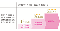 毎年4月1日に前年1月1日~12月31日までの購入金額に応じて、「1スター」「3スター」「5スター」の3ステージを適用する
