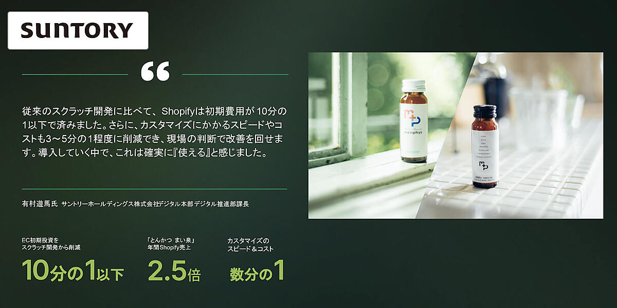 サントリーは「Shopify」へのリプレイスにより、カスタマイズのスピードとコストを3分の1から5分の1に大幅削減した。最大のメリットは、現場主導でPDCAサイクルを極めて早く回せるようになった点だという。
