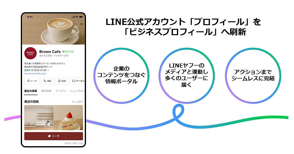 LINE公式アカウントでは2025年10月24日、従来の「プロフィール」を刷新し、新たに「ビジネスプロフィール」の提供を開始した。これに伴い、プロフィール画面のデザインや設定項目を変更した。主な変更点は次の2つだ。