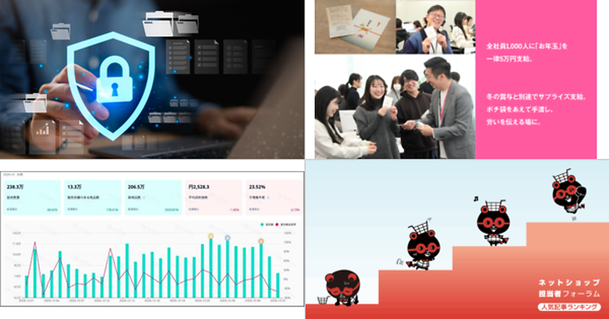アスクルなども被害を受けたランサムウェア攻撃の押さえておくべき攻撃手口や被害事例/EC支援などを行うアイルが全社員1000人に「お年玉」を一律5万円支給【ネッ担アクセスランキング】2026年1月9日~2026年1月15日にアクセス数の多かった記事のランキングを発表! 見逃している人気記事はありませんか?藤田遥1月16日 8:00シェアポストはてブBlueskyそれ、決済で解決できます。売上・UX・不正対策――すべてにつながる「見直しポイント」 アサヒビールやアスクルも被害を受けたランサムウェア攻撃。押さえておくべき攻撃手口や被害事例、感染前後に取るべき対応など 業種や企業規模に問わず多くの企業が標的となるランサムウェア。感染を未然に防ぐ方法、多様化する手口などを具体的なプロセスとあわせて解説します高橋祐太郎[執筆]1月13日 7:00 全社員1000人に「お年玉」を一律5万円支給、EC支援などのアイル。1年間の労い、物生活支援の意味を込め、冬の賞与と別途支給 近年の物価高を背景に、アイルは業績の伸長に応じて、給与や福利厚生の見直しを進めている。鳥栖 剛[執筆]1月13日 8:30 「TikTok Shop」の今、ローンチ6か月で累計流通総額は推計155億円。12月度は約60億円で前月比65%増、平均販売単価は2528円 レポートは、中国・北京有楽今天科技有限公司が提供する「TikTok Shop」コマース分析ツール「FastMoss」のデータから、販売規模の推移やカテゴリ別トレンド、価格帯、流入経路などを整理した。鳥栖 剛[執筆]1月9日 8:30 2026年にヒットが期待される10のキーワードは「大人のシール」「コグマパン」「ちきゅうのにわ」など/2025年のECを取り巻く環境はどう変わった?【ネッ担アクセスランキング】 2026年1月2日~2026年1月8日にアクセス数の多かった記事のランキングを発表! 見逃している人気記事はありませんか?藤田遥1月9日 8:00 「AIが買い物を代行する時代へ」。Googleが発表した小売業の未来と新標準プロトコル「UCP」とは UCPは、AIエージェントと各種システムが連携するためのオープンスタンダード。商品検索から購入、購入後サポートまで、ショッピングの一連の流れをシームレスにつなぐ共通ルール。鳥栖 剛[執筆]1月14日 7:30 「買い物・購買目的でAIを活用した」は1割未満、利用意向は37%。若年層では半数近くに 電通マクロミルインサイトは、生活者におけるAIの浸透状況や受容度、購買行動への影響を把握することを目的とした「購買行動におけるAI浸透度調査」を実施した。鳥栖 剛[執筆]1月9日 9:30 Google、商品検索から購入後のサポートまで支援するAIエージェントの導入を実現する「Gemini Enterprise for Customer Experience (CX)」を発表 Google Cloudが発表した「Gemini Enterprise for CX」は、ショッピングとカスタマーサービスを1つの知的なエージェント・プラットフォームとして統合することを目的に設計された。鳥栖 剛[執筆]1月14日 8:30『売れる! EC事業の経営・運営 ネットショップ担当者、チームのための成功法則。』ダイジェスト 2026年のEC事業で「最も優先すべきこと」は、力配分の見直し+捨てる・削るモノの見極め+攻めるための余力作り 『売れる! EC事業の経営・運営 ネットショップ担当者、チームのための成功法則。』著者の坂本悟史が、EC業界の現状と今後最も大切になることを解説坂本 悟史[執筆]1月13日 8:00 アプリの重要なKGIは、1位「EC売上」、2位が実店舗への集客(OMO)。やりたい施策ができていない理由の1位は「機能追加・改修に費用がかかる」 公式アプリはECと店舗をつなぐ重要なチャネルとして位置付けられている一方で、「本当はやりたい施策」が実行できていない現実も浮き彫りとなった。鳥栖 剛[執筆]1月10日 10:00 白鳩の2025年11月期のEC売上は42億円、1.3億円の営業損失 白鳩の2025年11月期における売上高は42億800万円となった。営業利益は1億3100万円の赤字、経常利益は1億4900万円の赤字、当期純利益は3億1400万円だった。鳥栖 剛[執筆]1月13日 9:30※期間内のPV数によるランキングです。一部のまとめ記事や殿堂入り記事はランキング集計から除外されています。業界動向 9,436お知らせ 774この記事をシェアしてほしいタヌ!ポストする>ブクマするnoteで書くLINEで送る