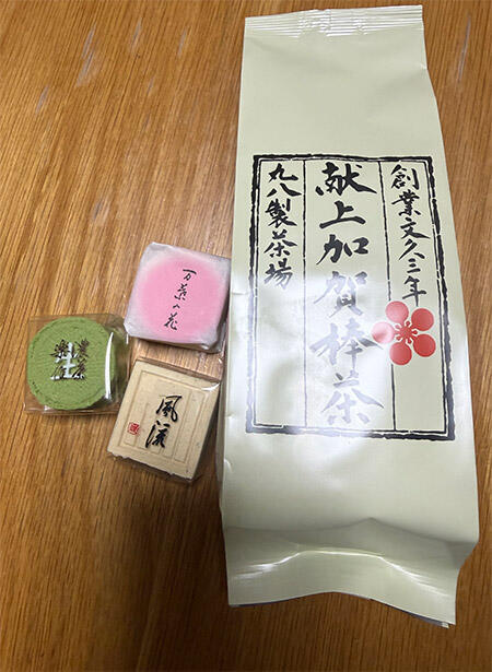 家族が金沢に行ったので、お土産に落雁と加賀棒茶を買ってきてもらいました。