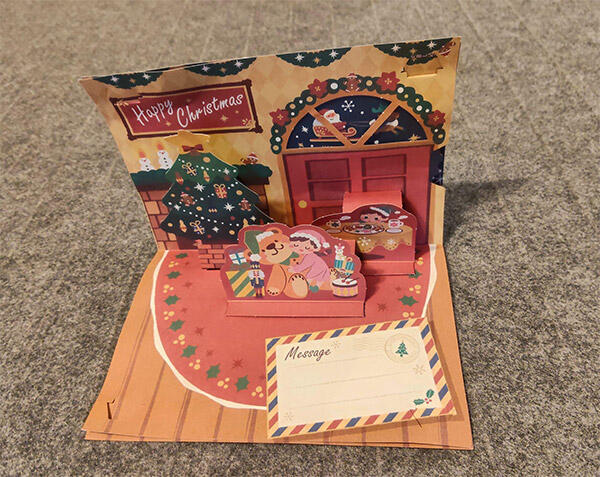 クリスマスをモチーフにしたものですが、折ったり貼ったりしてできあがると、その立体感やディテールに感心しました。さすがに素人のおりがみとは違いますね。
