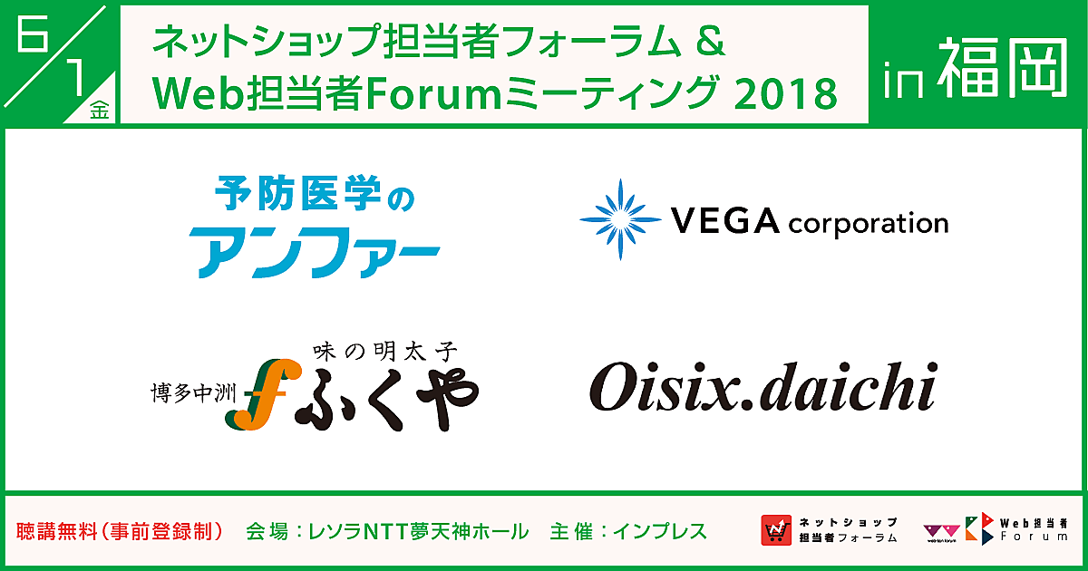 | イベント名 | ネットショップ担当者フォーラム& Web担当者Forumミーティング2018 in 福岡 |