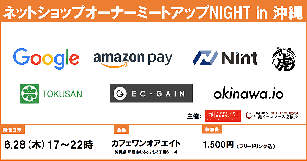 一般社団法人 沖縄イーコマース協議会とネットショップ担当者フォーラムはGoogleやAmazonのプロフェッショナルたちから集客ノウハウを学ぶ!SEO、SNS、広告、ブログなど、ネットショップの集客について徹底的に学びあう夜型勉強会イベントを合同開催いたします。