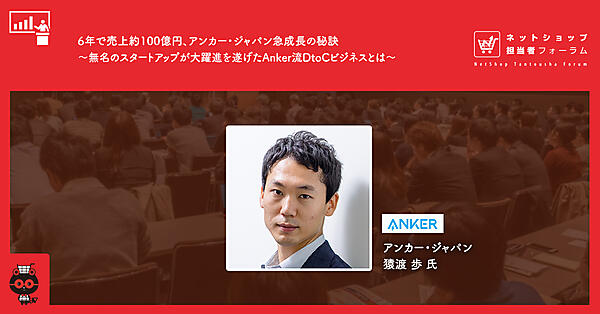 Ankerグループの日本法人、アンカー・ジャパンは設立から6年目で、年商約100億円超の規模まで急成長しました。どのような戦略、どんな考えで顧客を掴み、成長を遂げたのでしょうか。講演では、成長のドライバーとなった「チャネル戦略」(EC販路から実店舗、プライシング等)「カスタマーサポート戦略」にフォーカスし、Anker流DtoCビジネスをご説明します。メーカー、ブランドはもちろん、小売企業のEC戦略に役立つ内容です。