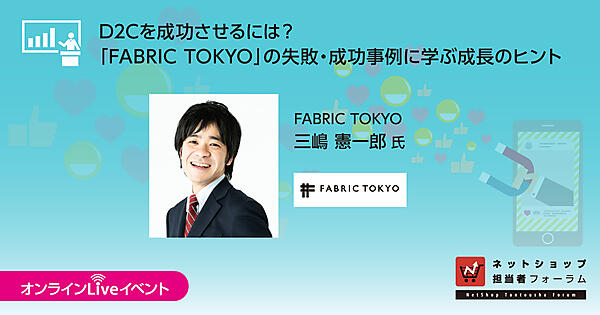 スーツ・シャツを手軽に低価格でオーダーメイドできるECサービス「FABRIC TOKYO」をリリースしたのは2014年。今では国内D2Cブランドの先駆者として注目されるFABRIC TOKYOですが、これまでの道のりは平坦ではありませんでした。アパレルは店舗で購入するのが当たり前の時代。失敗、失敗の繰り返しです。「D2C」というバズワードとなる以前から、顧客とダイレクトにつながるビジネスモデルを構築し、パーソナライズ、OMO、そして今後はRaaS(小売のサービス化)に取り組んでいる「FABRIC TOKYO」の失敗・成功事例、コロナ禍の取り組みなどを解説。店舗やECサイトで取得したパーソナルデータのOne to Oneマーケティングへの活用など、D2Cビジネスの鍵となるポイントなどを、「FABRIC TOKYO」の事例を踏まえてお伝えします。