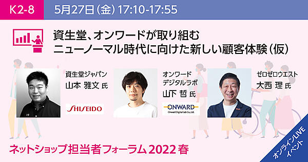 | 17:10 | K2-8クロージング講演 資生堂、オンワードが取り組むニューノーマル時代に向けた新しい顧客体験 ![]() 講師