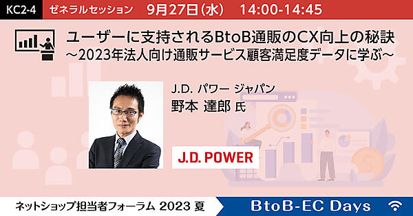 | 14:00 | KC2-4 ゼネラルセッション ユーザーに支持されるBtoB通販のCX向上の秘訣 ~2023年法人向け通販サービス顧客満足度データに学ぶ~ ![]() 講師