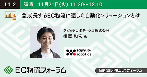 | 11:30 | L1-2 講演 急成長するEC物流に適した自動化ソリューションとは