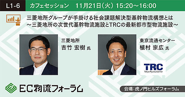 | 15:20 | L1-6 カフェセッション 【EC事業者向け】三菱地所グループが手掛ける社会課題解決型基幹物流構想とは ~三菱地所の次世代基幹物流施設とTRCの最新都市型物流施設~