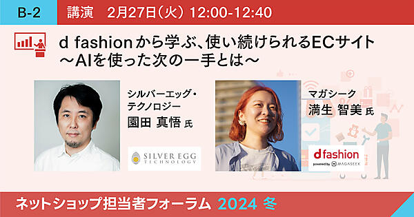 セッション概要 d fashion (dファッション) NTTドコモが提供するインターネットファッション通販サイトです。1500以上のブランドを取りそろえ、顧客の年齢、嗜好も幅広い同サービスでは、徹底した顧客分析を行い、、一人ひとりのニーズに応えるための機能を提供することで、リピート利用率を上げています。今回はd fashionを運営するマガシーク株式会社 満生様にご登壇いただき、シルバーエッグ・テクノロジーのAIを用いたパーソナライズド・マーケティング機能の実装を中心に、売り上げ向上、LTV向上の成功要因をお話いただきます。 プロフィール シルバーエッグ・テクノロジー株式会社 園田 真悟 氏 マガシーク株式会社 満生 智美 氏 続きを読む |