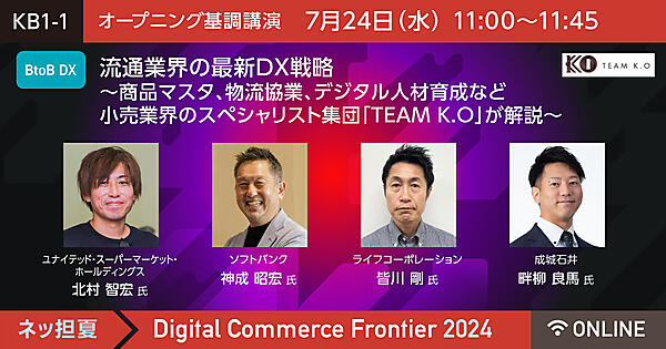 「Digital Commerce Frontier 2024」は、リテールビジネス、BtoC-EC、BtoB-EC、メーカーECなどデジタルコマースに携わる経営者・責任者・担当者に対し、AIやリテールテックなどの最新トレンド、最先端テクノロジー活用、事例、最新ソリューションなどをお届けするイベントです。