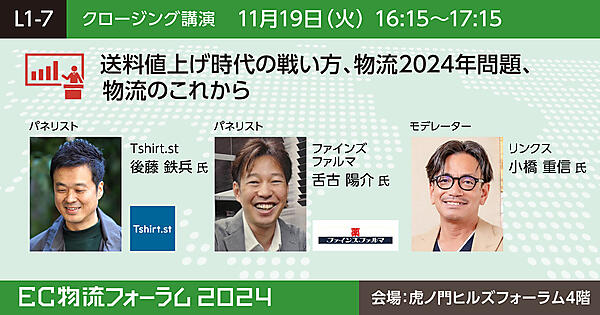 | 16:15 | L1-7 クロージング講演 送料値上げ時代の戦い方、物流2024年問題、物流のこれから