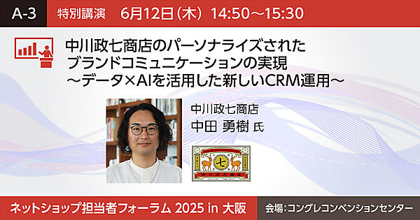 | 14:50 | A-3特別講演 中川政七商店のパーソナライズされたブランドコミュニケーションの実現 ~データ×AIを活用した新しいCRM運用~ ![]() 講師