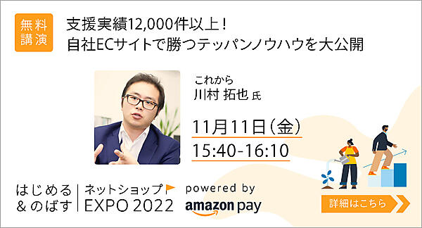 Amazon Pay主催、ネットショップ担当者フォーラムがメディア協賛する「はじめる&のばす ネットショップEXPO 2022」のイベントサイトが