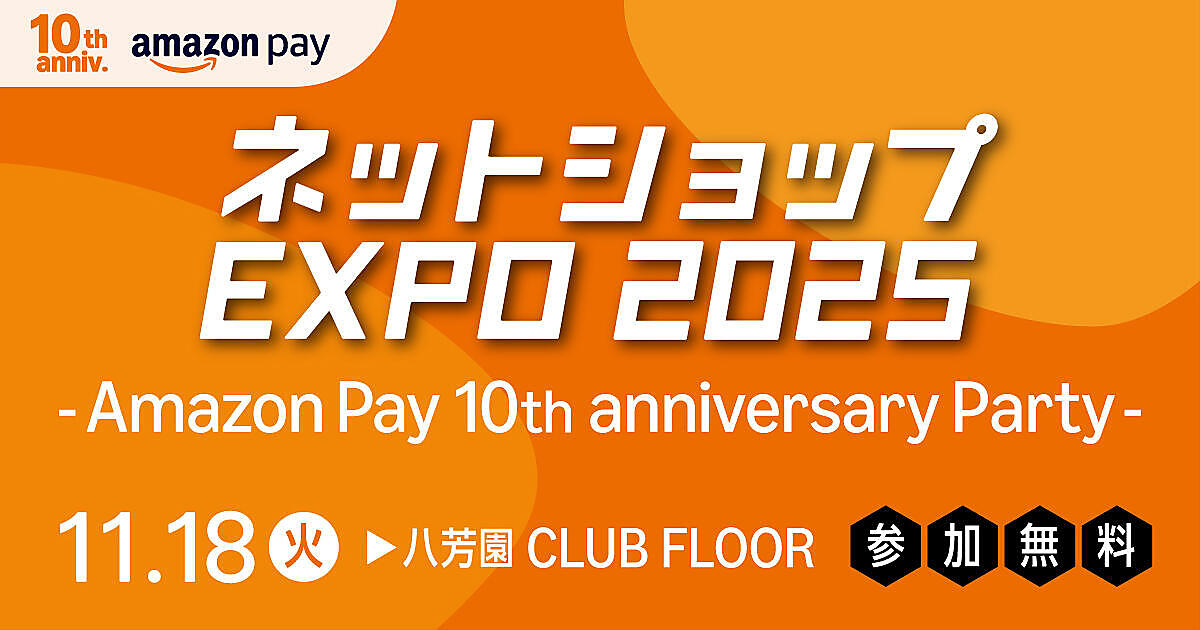 Amazon Pay主催、ネットショップ担当者フォーラムがメディア協賛する「ネットショップEXPO 2025」のイベントサイトがオープンし、今年のプログラムが公開されました。今年はAmazon Pay 10周年を記念した特別開催です。