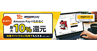 Amazon Payではキャンペーン「Amazonギフトカード大還元祭」「はじめてのAmazon Payでもれなく最大10%還元」「最大1.0%ギフトカード還元プログラム」「ティ・ジョイ×10周年 Amazon Pay GWキャンペーン」を開催している。