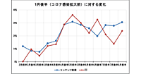 コロナ禍における「EC」や「コンテンツ配信」などのデジタル消費はコロナ感染拡大前と比べて20%以上の高い変化率が続き、デジタルシフトが続いている状態。「コンテンツ配信」は2か月ぶりに伸び率を大幅に伸ばし、巣ごもり消費復活の可能性がある。「アパレル」「百貨店」の消費行動は回復に足踏みが見られた。