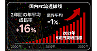楽天グループは2021年通期国内EC流通総額について、5兆円の突破を目標としている。2020年度(2020年1~12月期)国内EC流通総額は前期比19.9%増の4兆4510億円だった