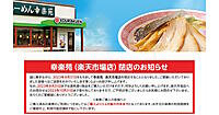 「幸楽苑 楽天市場店」「幸楽苑 Yahoo!ショッピング店」「幸楽苑 Amazon店」を9月末までに閉店。11月1日付で通販事業部を廃止する