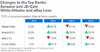 アマゾンの急成長でeBayは米国でのシェアを落とし、中国ではJD.com(ジンドン、京東集団)がシェアを伸ばしている