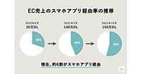 スマホアプリのDL数増でEC売上のスマホアプリ経由率も増加。400万DL突破時点で71%にまでスマホ経由売上の割合が増えている。