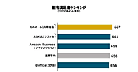 2020年オフィス用品通販サービス顧客満足度調査で、総合満足度ランキングの第1位は「ASKUL」で668ポイント。2位は「カウネット」で665ポイント、3位は「たのめーる」で658ポイント