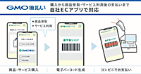 GMOペイメントサービスが新たに提供する「スマホアプリタイプ」は、コンビニや銀行などで代金を支払う後払いにおいて、従来の支払い用バーコードを請求書に印字して郵送する「払込票方式」に加え、自社のECアプリ上で電子バーコードを発行する、請求書不要の「電子バーコード方式」の選択を可能にするもの