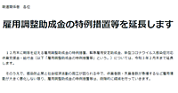「新型コロナウイルス感染症対応休業支援金・給付金」「雇用調整助成金(特例措置)」「緊急雇用安定助成金」の対象期限を2021年2月末までに延長すると厚生労働省が発表した