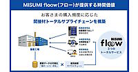 「MISUMI floow」では、高頻度で使用する消耗品は工場内に設置した自動販売機で販売。中頻度品は定期配送で、低頻度の都度調達品はECサイトや専任窓口で見積もり対応する。間接材調達の最適化によってトータルコストダウンを支援する。