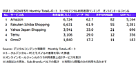 ニールセン デジタルが調査した2024年5月におけるECモールの利用状況によると、最も利用者数が多かったのは「Amazon」で6724万人だった。「楽天市場」は6631万人、「Yahoo!ショッピング」は3541万人。
