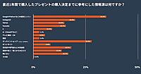 調査の結果、ギフト探しの情報源には「検索エンジン」が最も多く使われていたが、次点でECを活用している人が多く見られた。また、SNSのなかではInstagramの利用が特に多い結果となっている