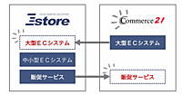 パッケージ型インテグレーションECシステムのコマース21を子会社化することで、大企業から中小企業までを対象とするECシステムをフルラインアップで提供する体制を整える。Eストアーとコマース21は共に1999年設立の老舗EC支援企業