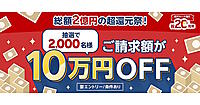 「楽天カード」発行から20周年を迎えたことを記念した「超還元祭!」キャンペーンで、10月分カード請求額から10万円を値引きするキャンペーンを実施する。抽選人数は2000人の予定。キャンペーンは8/1~8/31まで。
