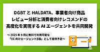 DGビジネステクノロジーとHALDATAが、「事業者向け商品レビュー分析エージェント」「消費者向け商品提案エージェント」の2機能を統合した「EC向けエージェント β版」の共同開発に着手。