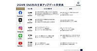 「Facebook」「X」「Instagram」「LINE」「YouTube」「TikTok」「BeReal」「Pinterest」「Lemon8」「Threads」といったSNS別の主要アップデート早見表も公開した。