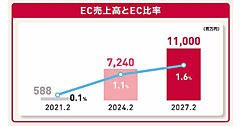 しまむらの2025年2-7月期(中間期)のEC売上は、前年同期比43.5%増の88億円だった。