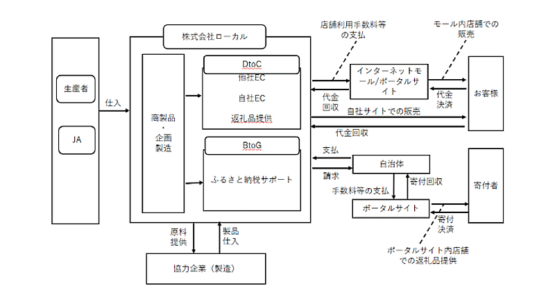 ローカルは2008年、熊本市でコムセンスとして設立。ECサイトでの商品販売やふるさと納税の返礼品提供を手がけるDtoC事業、ふるさと納税の運営サポートのBtoG事業を中心に、「食のSPA」モデルで事業を展開している。