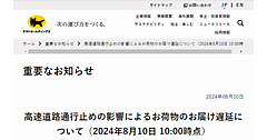 ヤマト運輸は、12月8日から新名神高速道路で実施される夜間通行止め工事に伴い、荷物の配送に遅延が発生する可能性があると発表した。影響は東京・関東と関西を発着する荷物を中心に、全国に波及する見込みという。