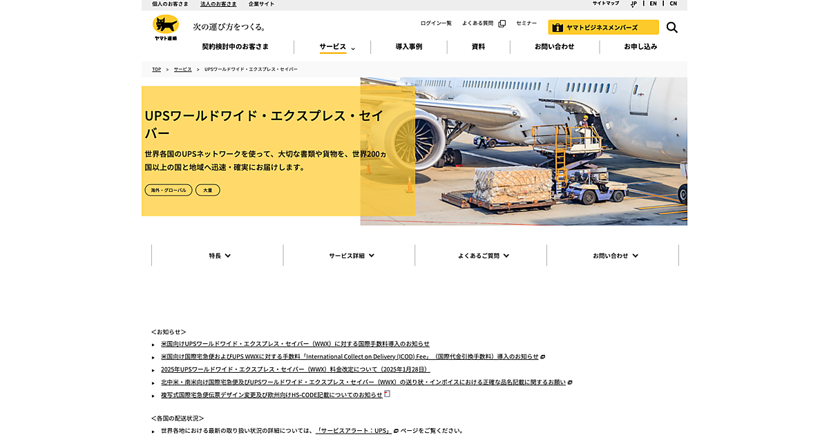 「UPS WWX」は、UPSのグローバル物流ネットワークを活用し、書類や貨物を世界200以上の国と地域に配送する国際宅配サービス。UPSは米国に本社を置く国際宅配・貨物輸送会社で、日本国内ではヤマト運輸と業務提携。ヤマト運輸は同サービスの販売総代理店を務めている。