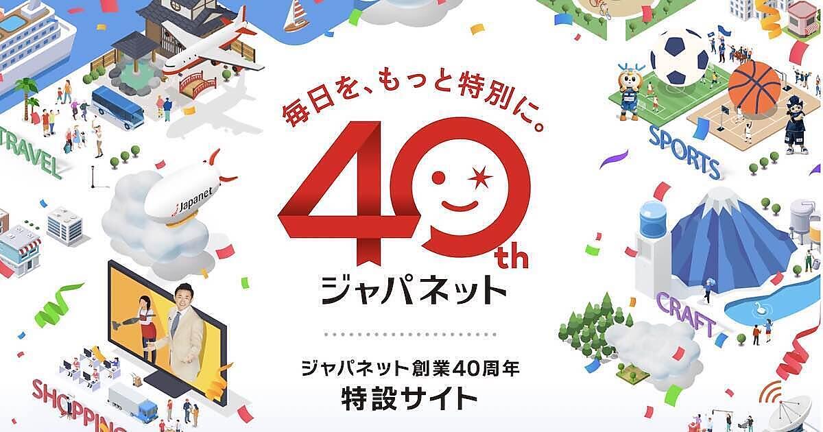 開設した40周年記念サイトでは、ジャパネットの歴史を振り返るコンテンツや、過去のオープニング動画の公開、40周年を機にリニューアルした公式キャラクターの紹介などを展開している。