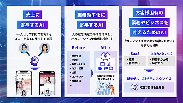 ecbeingは「ecbeing AI+」を中核に、「EC×AI」の将来像として次の3点を掲げている。