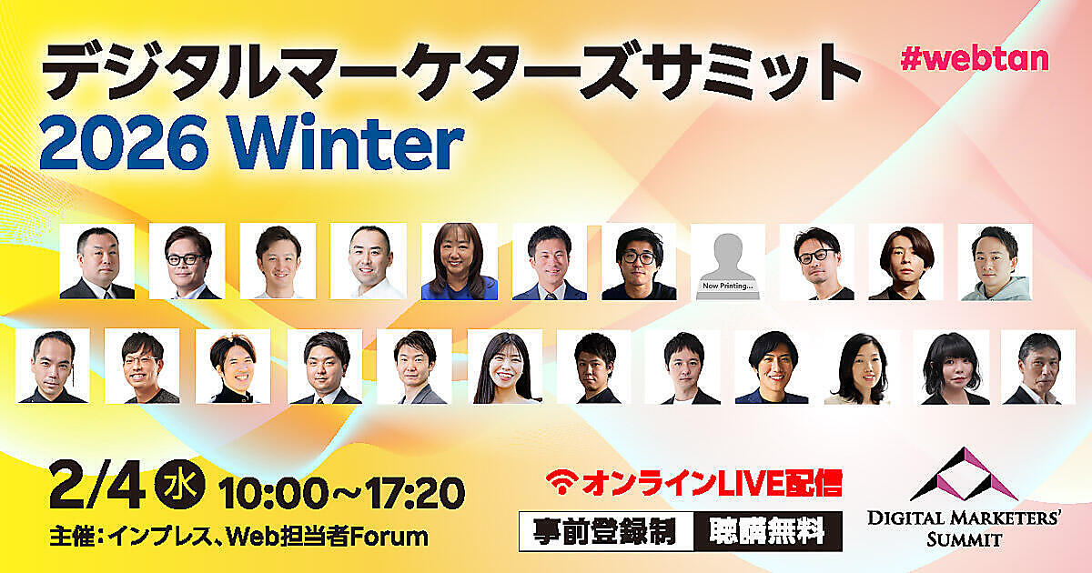 Web担当者Forumが無料のセミナーイベントを主催しているのをご存じでしょうか? 今回は、2月4日(水)に開催されるオンラインセミナー「デジタルマーケターズサミット 2026 Winter」についてご紹介します。