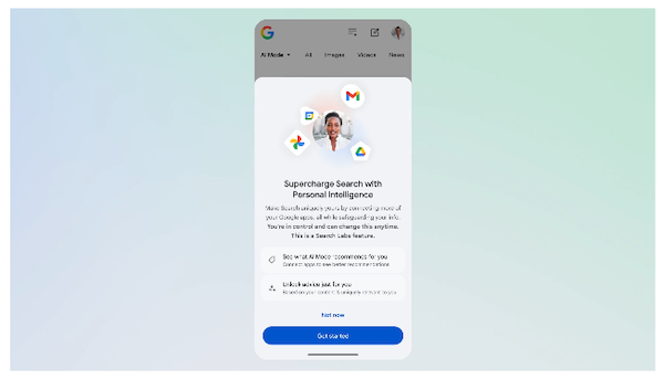 Googleは1月22日、公式ブログで「Google AI Pro」「Google AI Ultra」の加入者を対象に、GmailとGoogleフォトを検索のAIモードに接続し、パーソナライズされた検索結果を受け取れる新機能「Personal Intelligence in AI Mode(パーソナルインテリジェンス)」の提供を開始したと発表した。ユーザーはオプトインでデータ連携を選択でき、買い物や旅行などでより最適な検索結果を得られるようになるという。