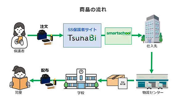 学校向け通販「スマートスクール」利用校を対象に、保護者が授業用の個人教材(希望品)をオンラインで購入・決済できるECサイト「TsunaBi(つなビー)」を開設。1月30日から一部地域でテスト運用を開始し、6月から全国展開(離島を除く)を予定している。